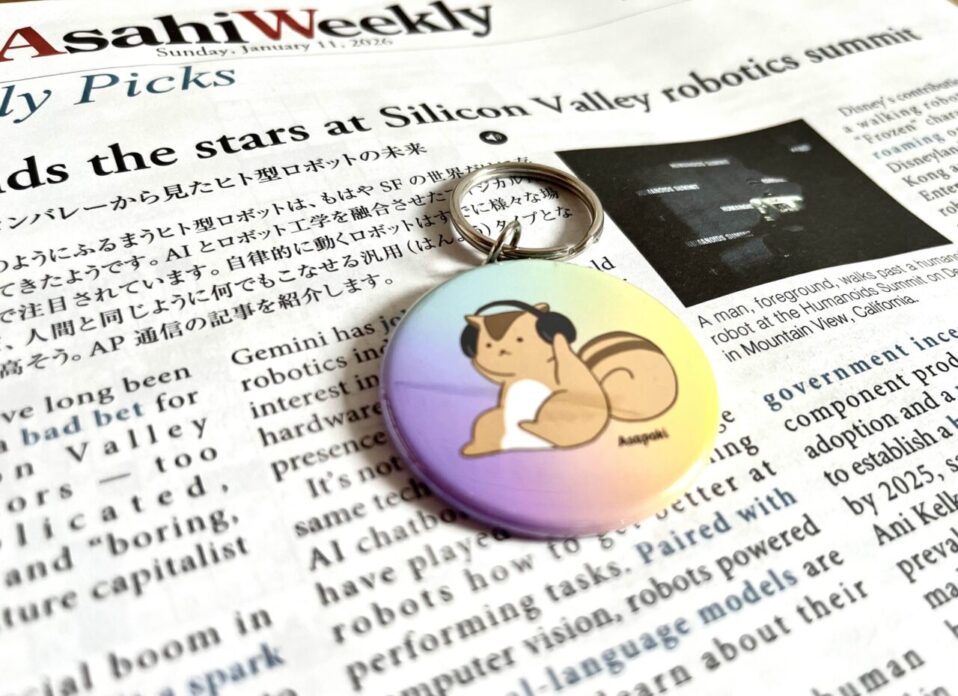 私が朝ポキを知ったのは2024年に東京の下北沢で開催されたイベント「podcast weekend」でした。これはポッドキャスト配信者と、番組のリスナーが集うイベントで、朝ポキも出店していました。下の写真はここで買った朝ポキのオリジナルキャラクターグッズの缶バッチです。